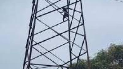 मानसिक रूप से परेशान युवक हाई टेंशन खंभे पर चढ़ा, घंटों बाद बचाया