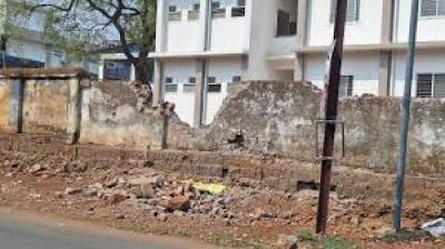 महाराजा यशवंतराव अस्पताल परिसर में बाउंड्री वॉल पर चला बुलडोजर