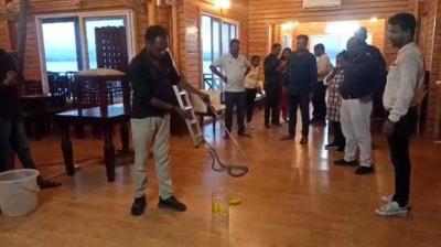पर्यटन स्थल सतरेंगा के कैंटीन में एसी के अंदर घुस कर बैठा था सर्प-मची अफरा-तफरी