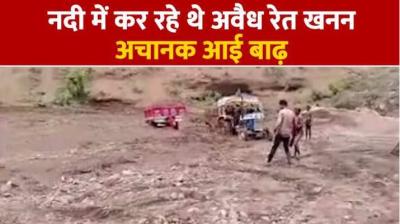 रेत निकालने के दौरान नदी में उमड़ा पानी, दोनों युवकों की जान पर बनी आफत, ट्रैक्टर समेत फंस गए बीच धारा में