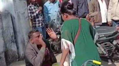 बीच सड़क पर हंगामा, युवक से माफी मंगवाती महिला का वीडियो वायरल
