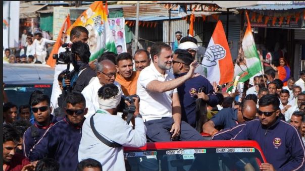 खुली जीप में सवार हो राहुल गांधी ने किया रोड शो