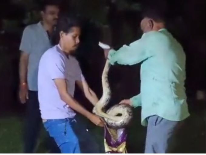 रेस्ट हाउस में घुसा विशाल अजगर: शिकार की तलाश में मचाया हड़कंप, रेस्क्यू के बाद दिखा भयावह रूप, उठाने में लगे दो लोग