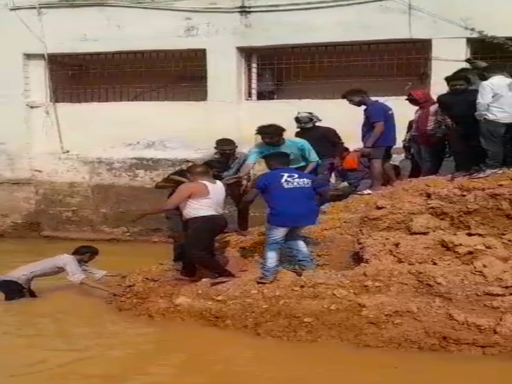गड्ढे में भरे पानी में दिखी बच्चे की टोपी