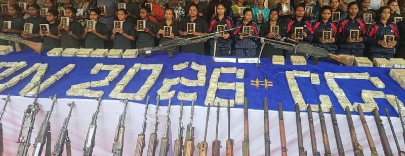 इन हथियारों में एके 47, इंसास, एलएमजी और बीजीएल शामिल थे। नक्सल इतिहास में पहली बार 3.61 करोड़ रुपये नकद और 1.64 करोड़ रुपये मूल्य का एक किलो सोना बरामद किया गया। इसे अब तक के नक्सल विरोधी अभियानों में सबसे बड़ी डंप बरामदगी माना जा रहा है। यह सभी सामग्री बस्तर रेंज के विभिन्न जिलों से बरामद की गई थी। इनमें बीजापुर, दंतेवाड़ा, सुकमा, नारायणपुर, कांकेर, कोंडागांव और बस्तर जिले शामिल हैं। बरामद किए गए सभी डंप और सामग्री को सार्वजनिक रूप से प्रदर्शित किया गया। यह प्रदर्शन जगदलपुर स्थित रेंज मुख्यालय में आयोजित आत्मसमर्पण कार्यक्रम के दौरान हुआ। पुलिस अधिकारियों ने बताया कि यह सामग्री अलग-अलग अभियानों में मिली थी। इसमें 101 घातक हथियार और बड़ी मात्रा में नकदी व सोना शामिल था।