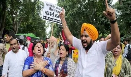 एआई समिट में हुए हंगामे के विरोध में भाजपा का प्रदर्शन